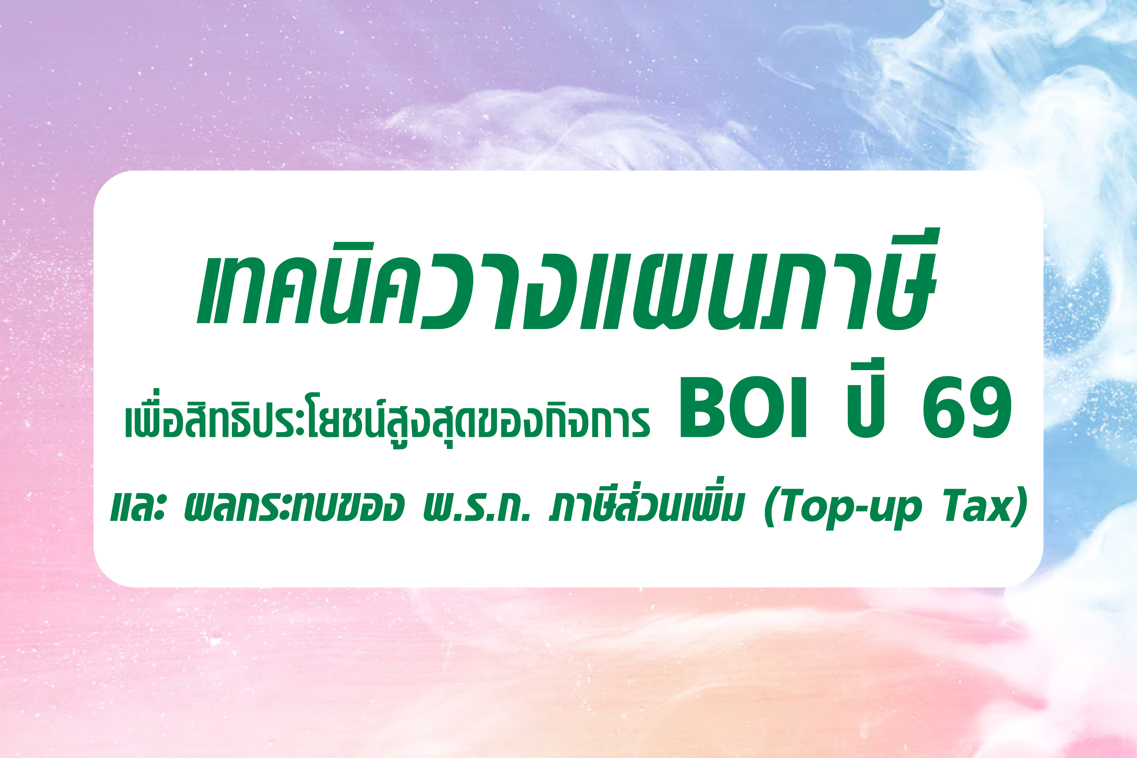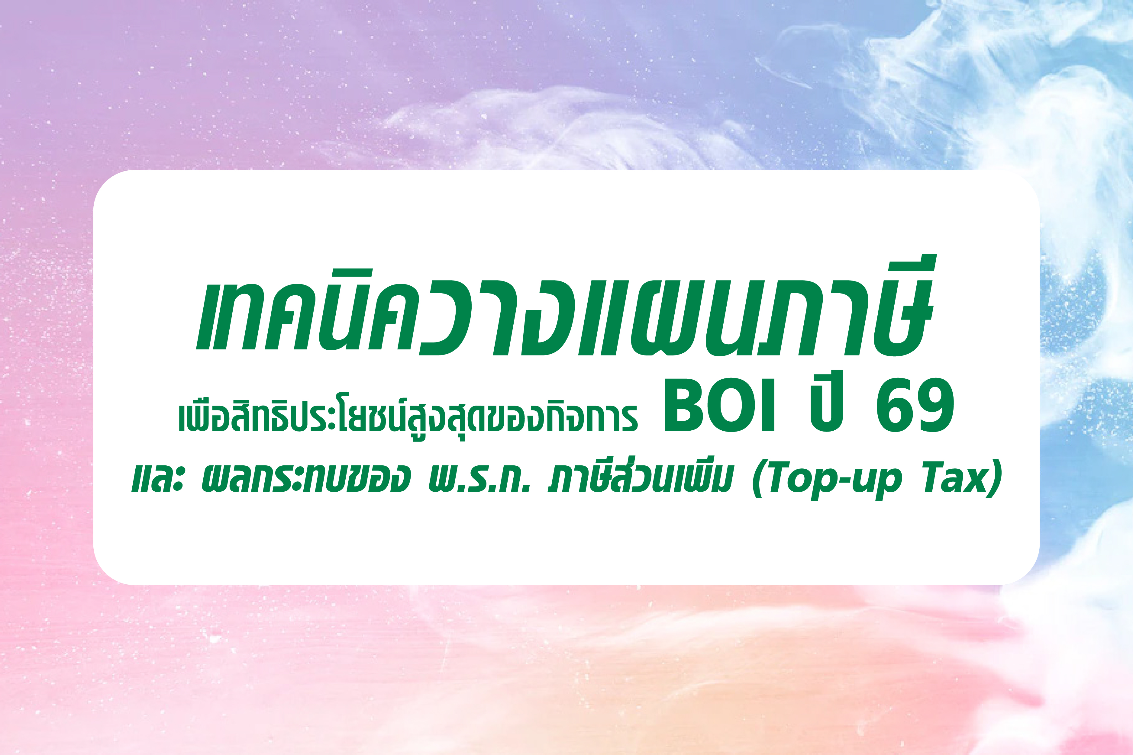 เทคนิควางแผนภาษี เพื่อสิทธิประโยชน์สูงสุดของกิจการ BOI ปี 69 และผลกระทบของ พ.ร.ก. ภาษีส่วนเพิ่ม (Top-up Tax)
