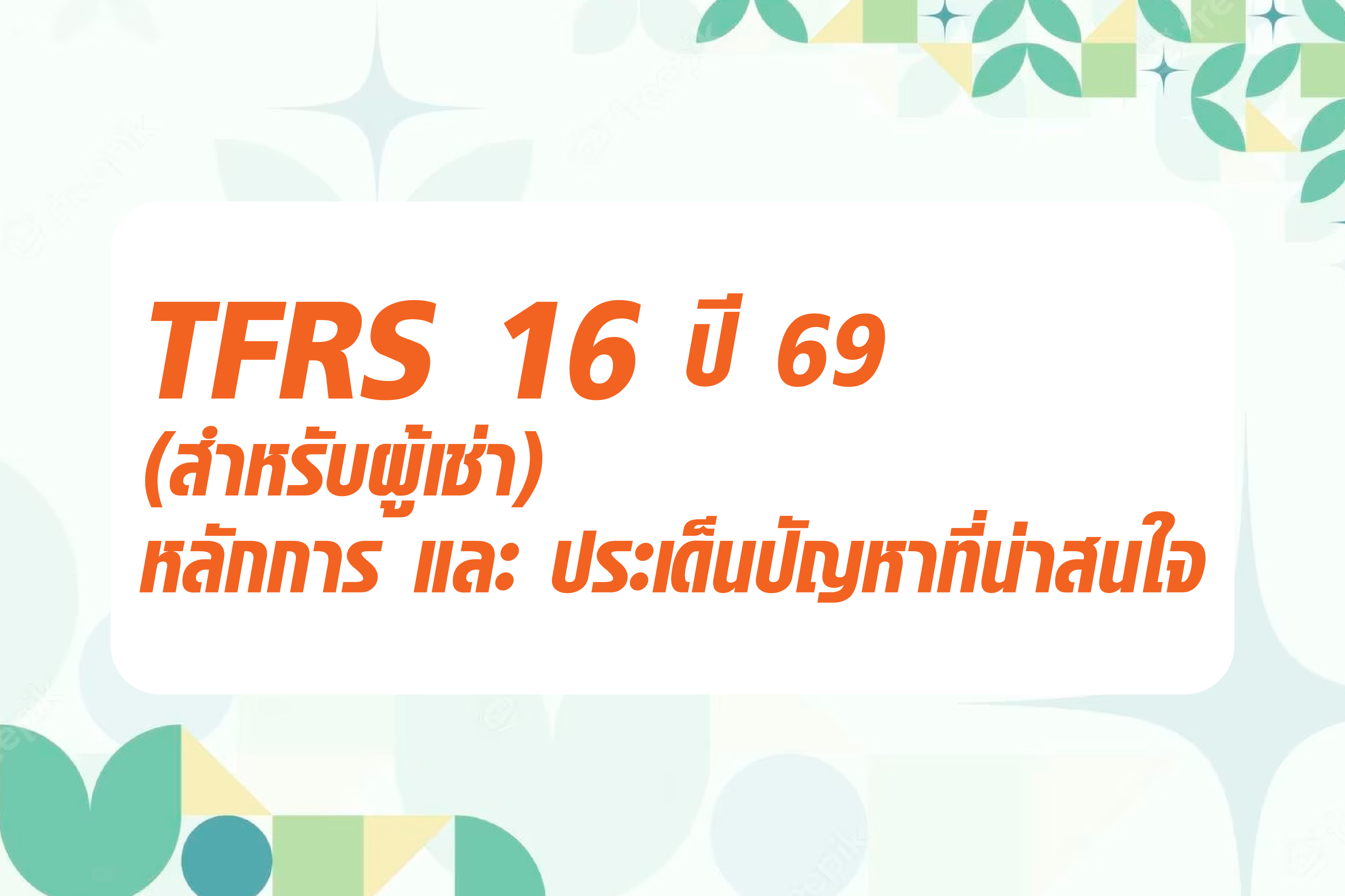 TFRS 16 ปี 69 (สำหรับผู้เช่า) หลักการ และประเด็นปัญหาที่น่าสนใจ