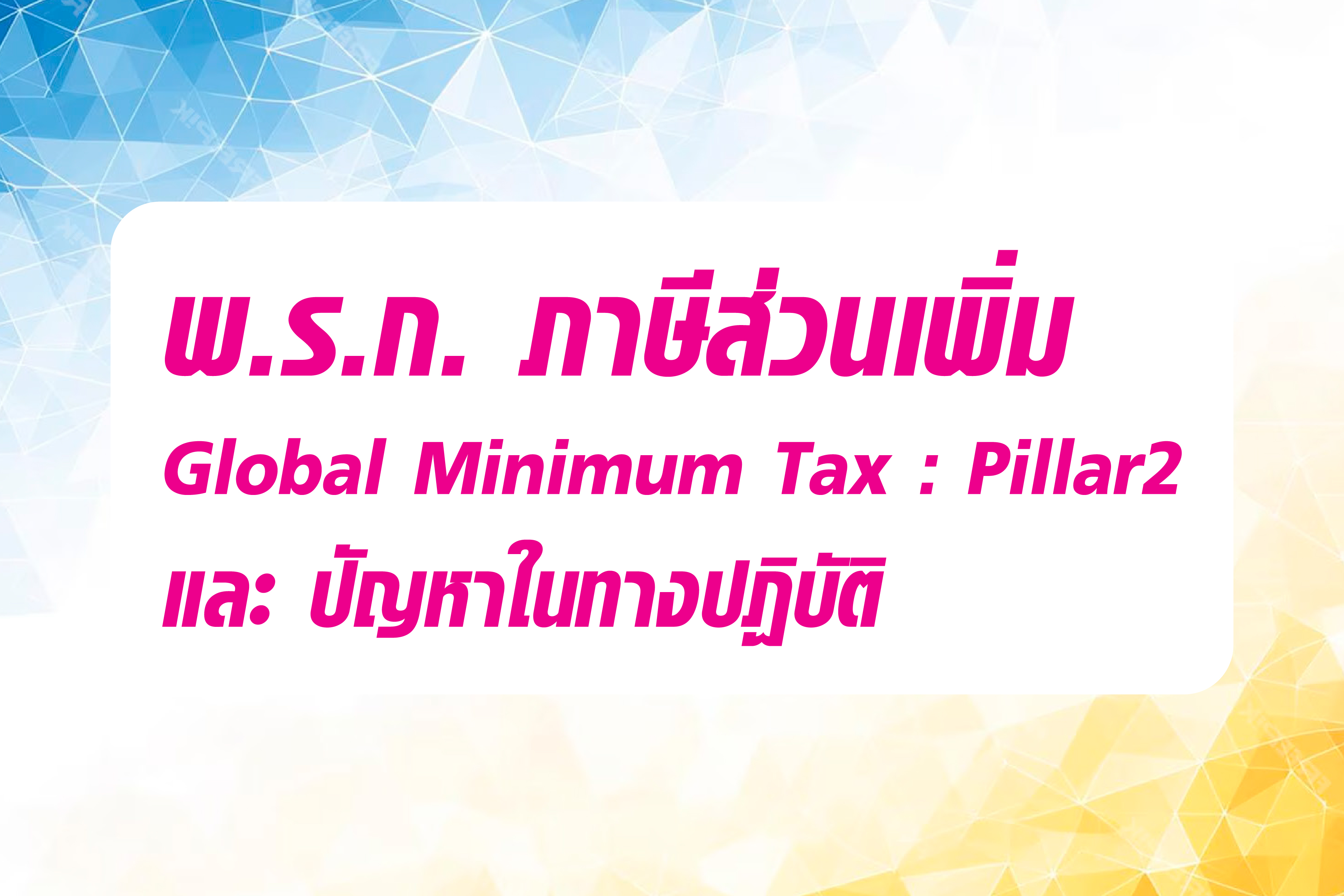 พ.ร.ก. ภาษีส่วนเพิ่ม Global Minimum Tax : Pillar 2 และปัญหาในทางปฏิบัติ