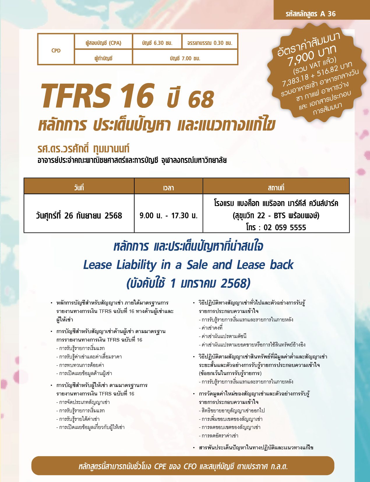 TFRS 16 ปี 68 หลักการ ประเด็นปัญหา และแนวทางแก้ไข