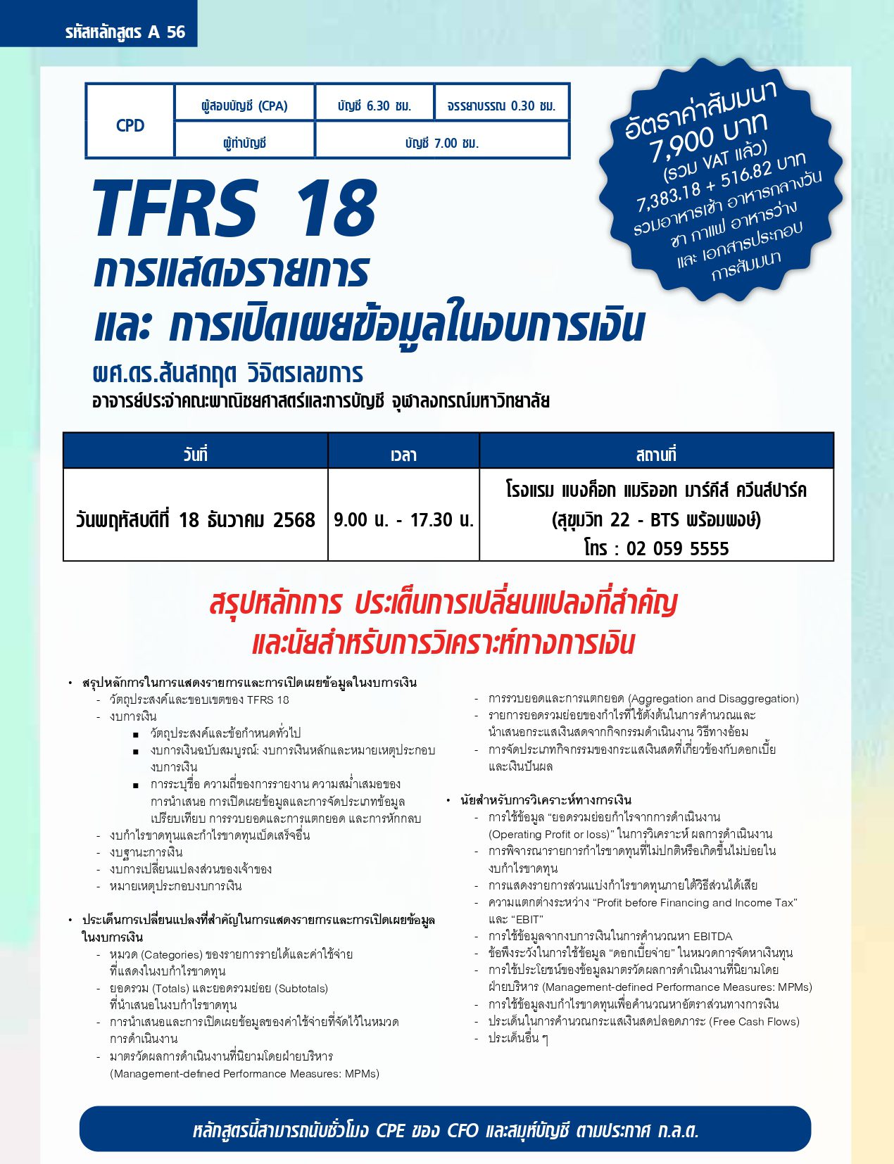 CPA: บัญชี 6.30 ชม. จรรยาบรรณ 0.30 ชม.