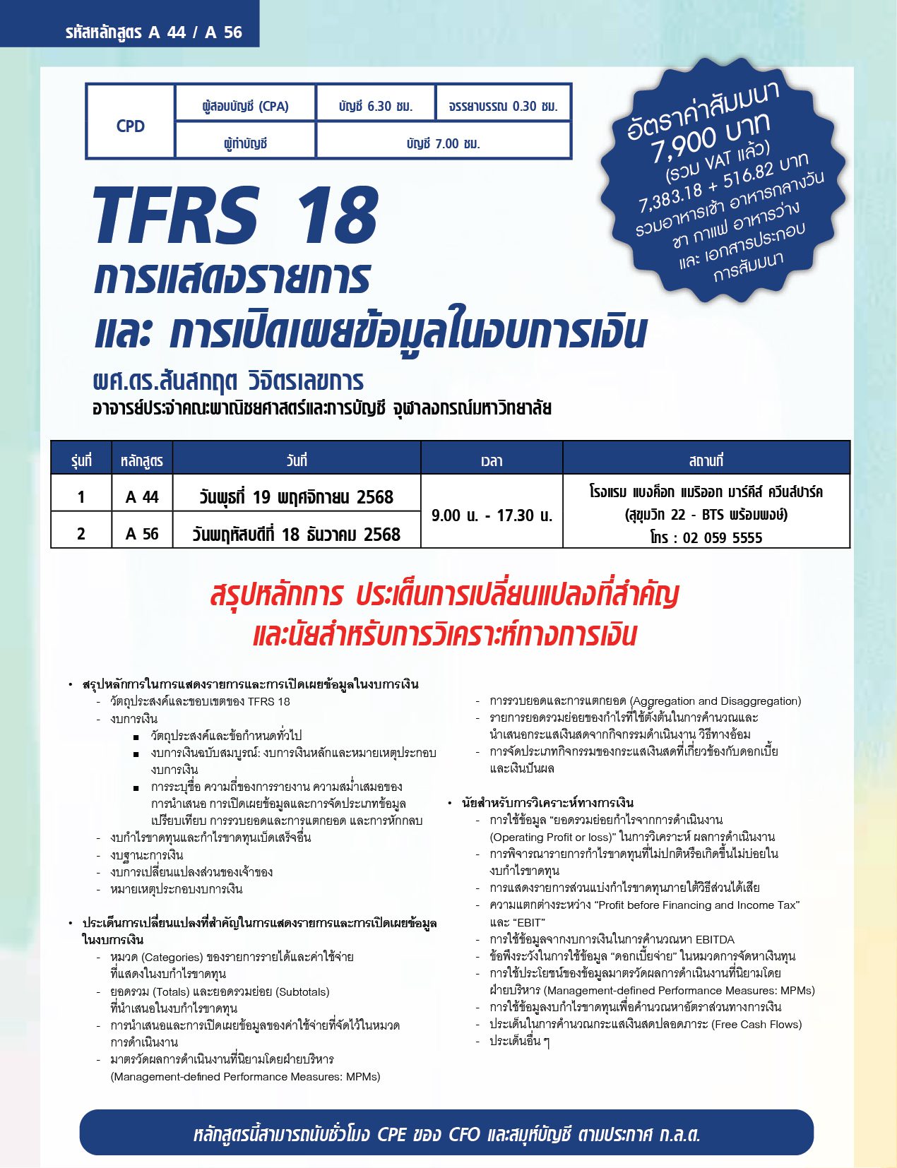 CPA: บัญชี 6.30 ชม. จรรยาบรรณ 0.30 ชม.