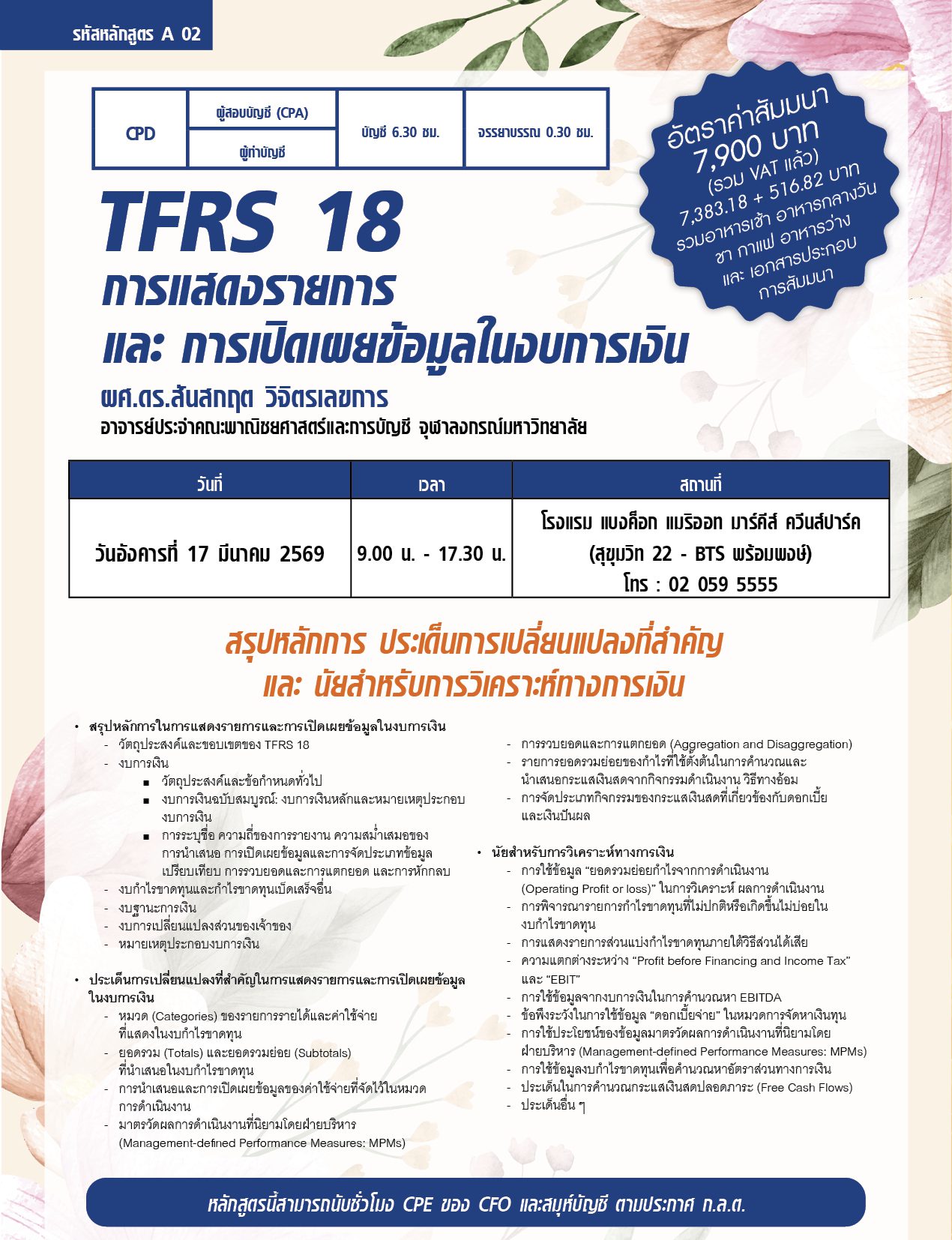 CPA: บัญชี 6.30 ชม. จรรยาบรรณ 0.30 ชม.