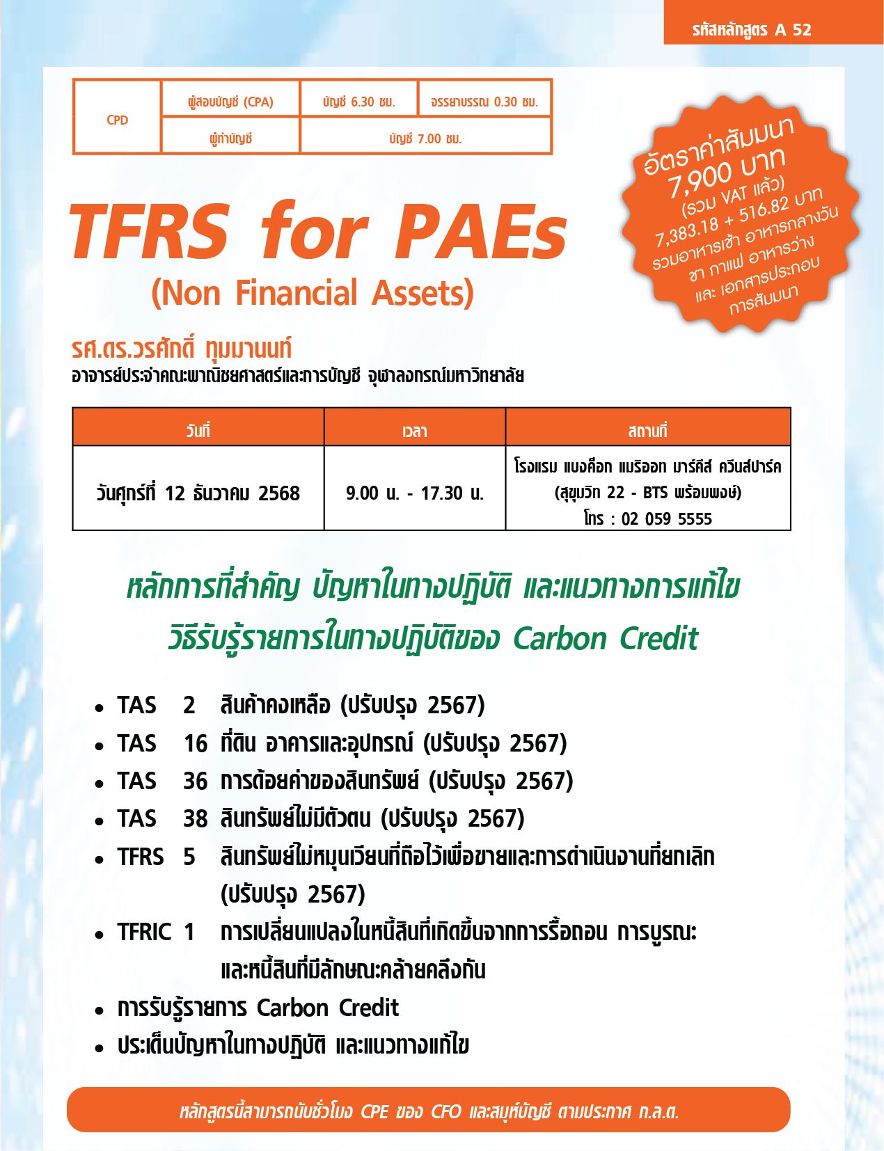 CPA: บัญชี 6.30 ชม. จรรยาบรรณ 0.30 ชม.